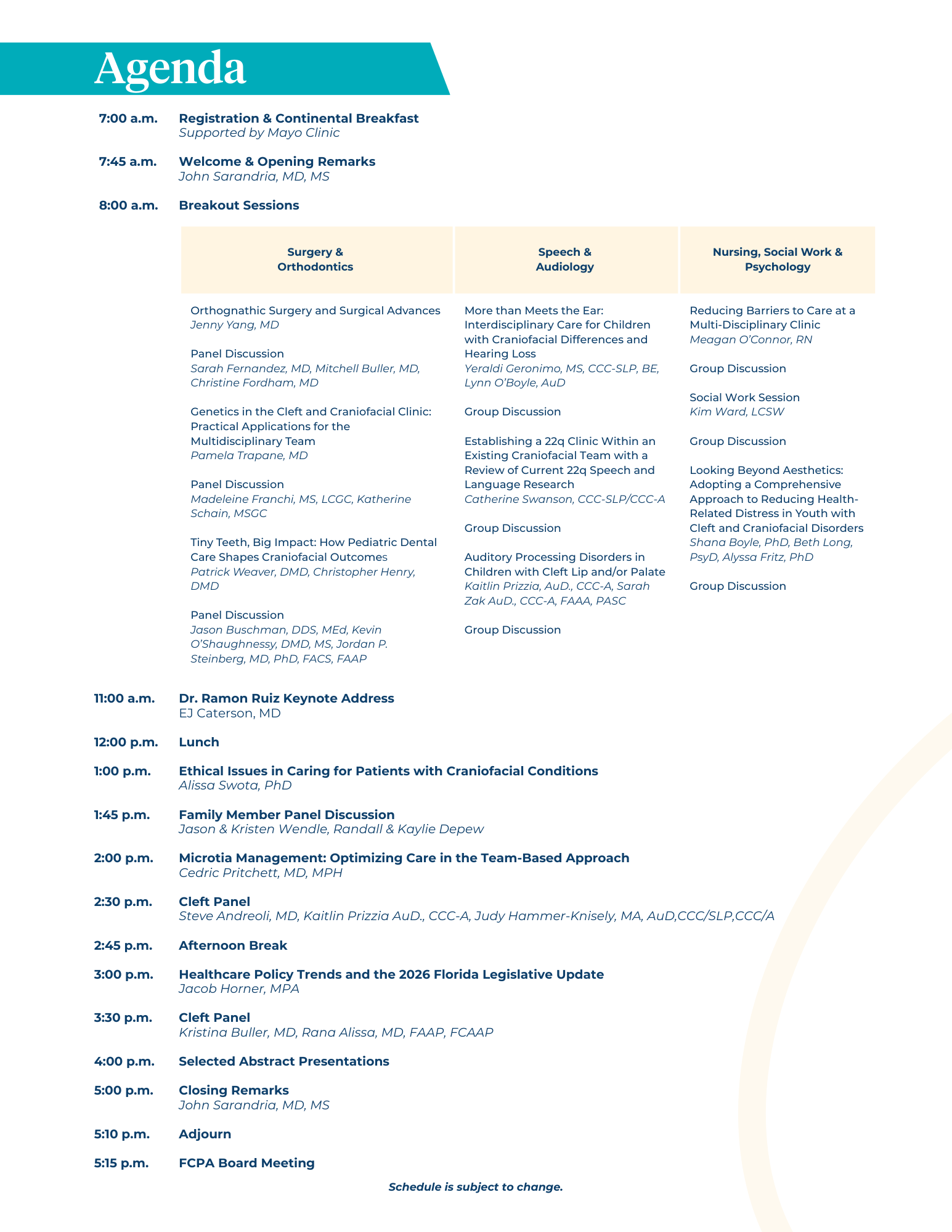Welcome to the 2026 Florida Cleft Palate - Craniofacial Association Annual Meeting website!