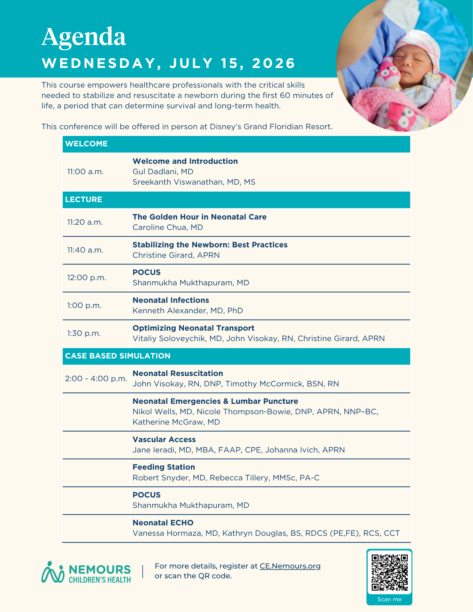 With 35% of U.S. counties classified as maternity deserts and Florida earning a D+ rating for premature births in 2025, the need for competent care is urgent. Coupled with a nationwide shortage of neonatologists, pediatricians, advanced practice providers, and nurses, this training addresses a vital gap by equipping learners to act decisively and save lives when every second counts.