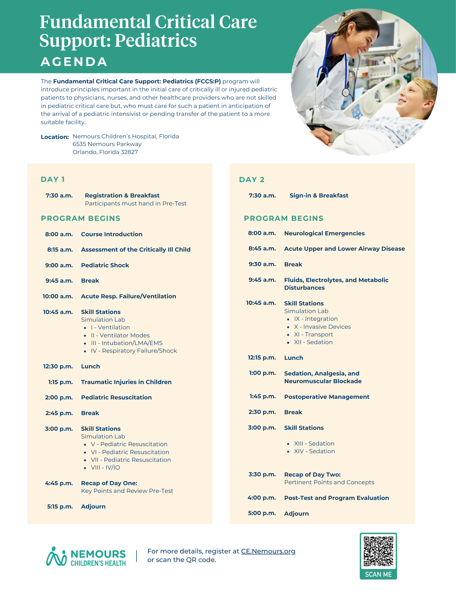 Nemours Children’s Health is accredited by the Florida Board of Nursing to provide nursing continuing education: Provider #50-1428. This course is an approved activity for 16.0 contact hours.
